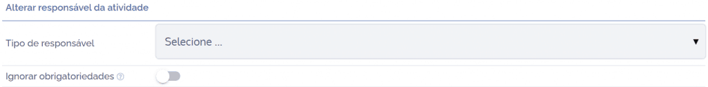 Ignorar obrigatoriedades: ao ativar o switch, permitirá a alteração automática do responsável da atividade, ignorando as obrigatoriedades.