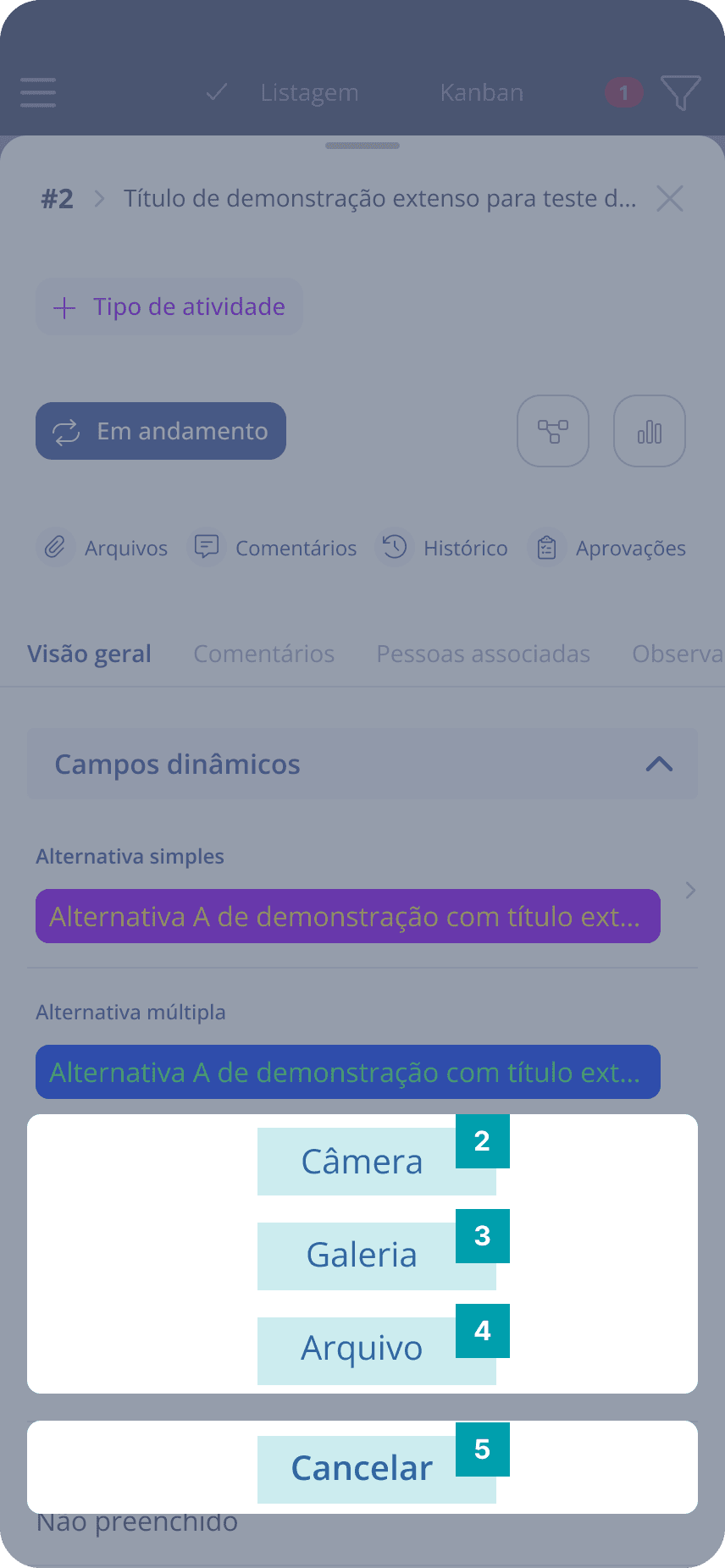 Important Note! * When editing a field in online mode, the system automatically updates the activity form, bringing the new information to the mobile activity and synchronizing it simultaneously with the web platform. This way, you can follow your updates in real time regardless of the device you are using. * Dynamic field types can be easily identified; the field type is always described right below the field title on its editing screen.