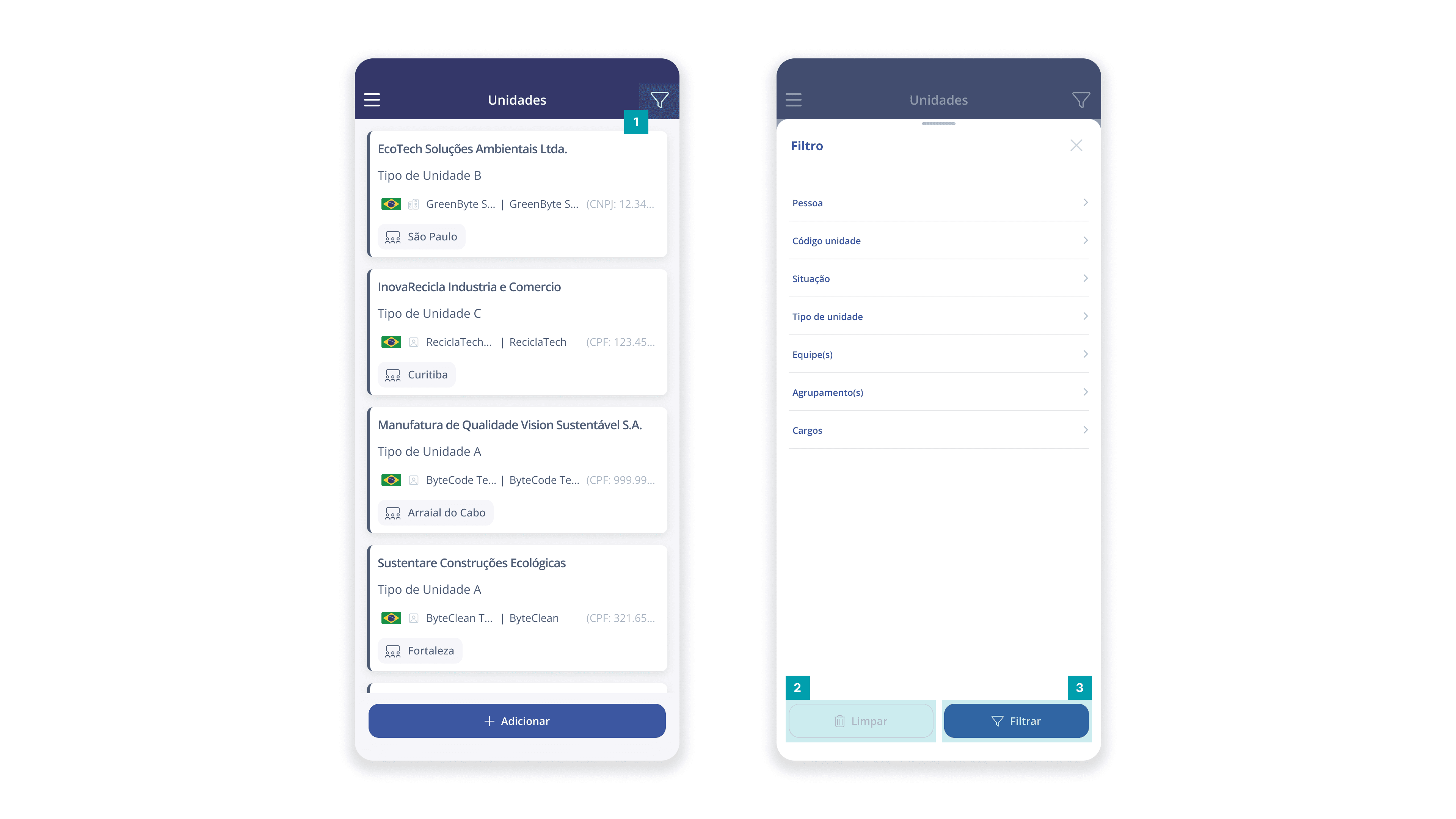 In Units, it is possible to configure the filter in order to refine the search results, to find a unit that exactly matches the established criteria. To do this, follow the step-by-step below: