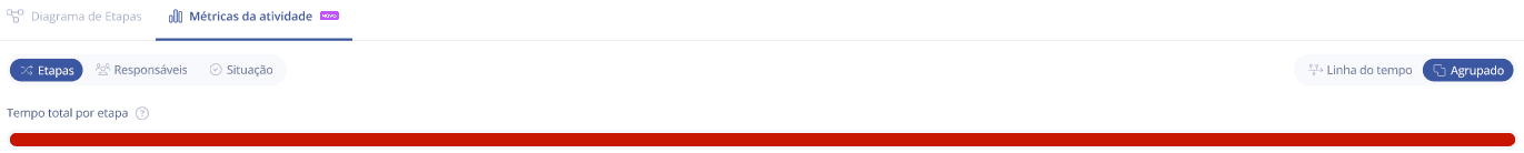When choosing the Status tab, a bar will be displayed showing the time spent in each activity status, with the not started status in gray and in progress in blue. In addition, there is an indication of whether the activity is already completed and/or canceled.
